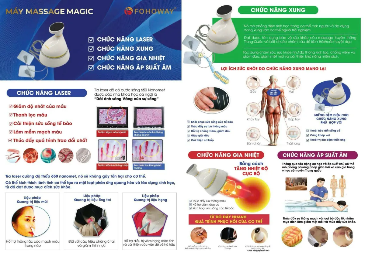 Máy Massage Magic FOHOWAY – Thiết bị trị liệu đa năng ứng dụng công nghệ hiện đại giúp chăm sóc sức khỏe toàn diện tại nhà.